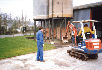 James Brinicombe breaking ground in 1993 to build the Liquid Feed Plant that now helps prevent Milk Fever and Twin Lamb Disease.